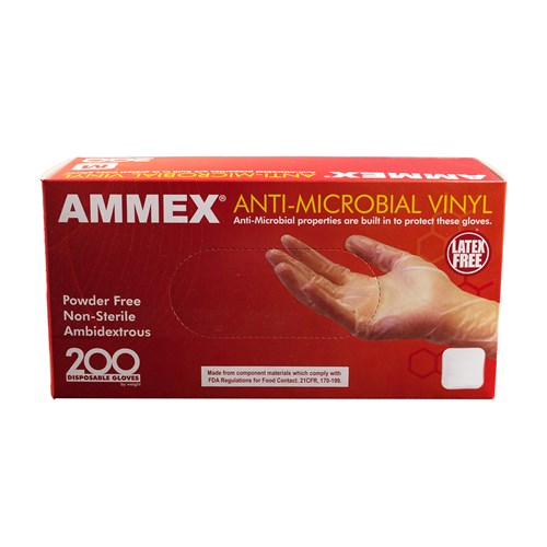 AMMEX Clear Anti-Microbial Vinyl Latex Free Disposable Gloves