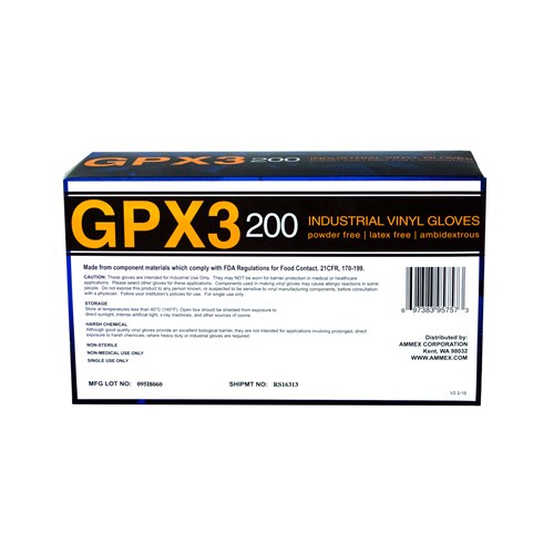 AMMEX® GPX3® Clear 200 Vinyl Powder Free Industrial Gloves are a terrific value: good-quality disposable gloves at a great price. When you buy them in boxes of 200, you save even more.