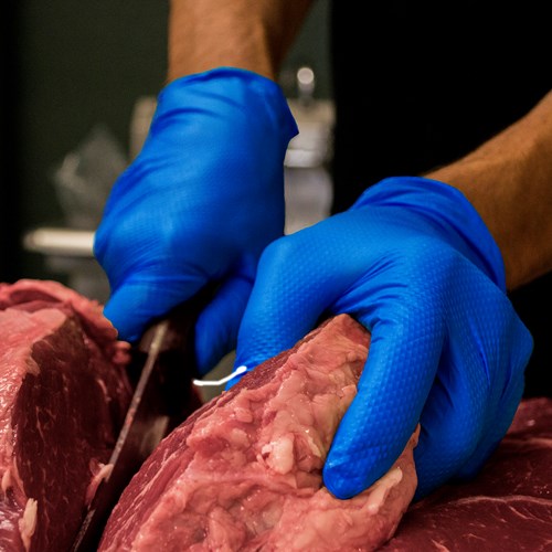 In the food processing industry, protection from cross-contamination is important—for the worker, the product, the customer and, ultimately, for the business. AMMEX® Gloveworks® HD Royal Blue Nitrile Powder Free Industrial Gloves help keep all those bases covered.